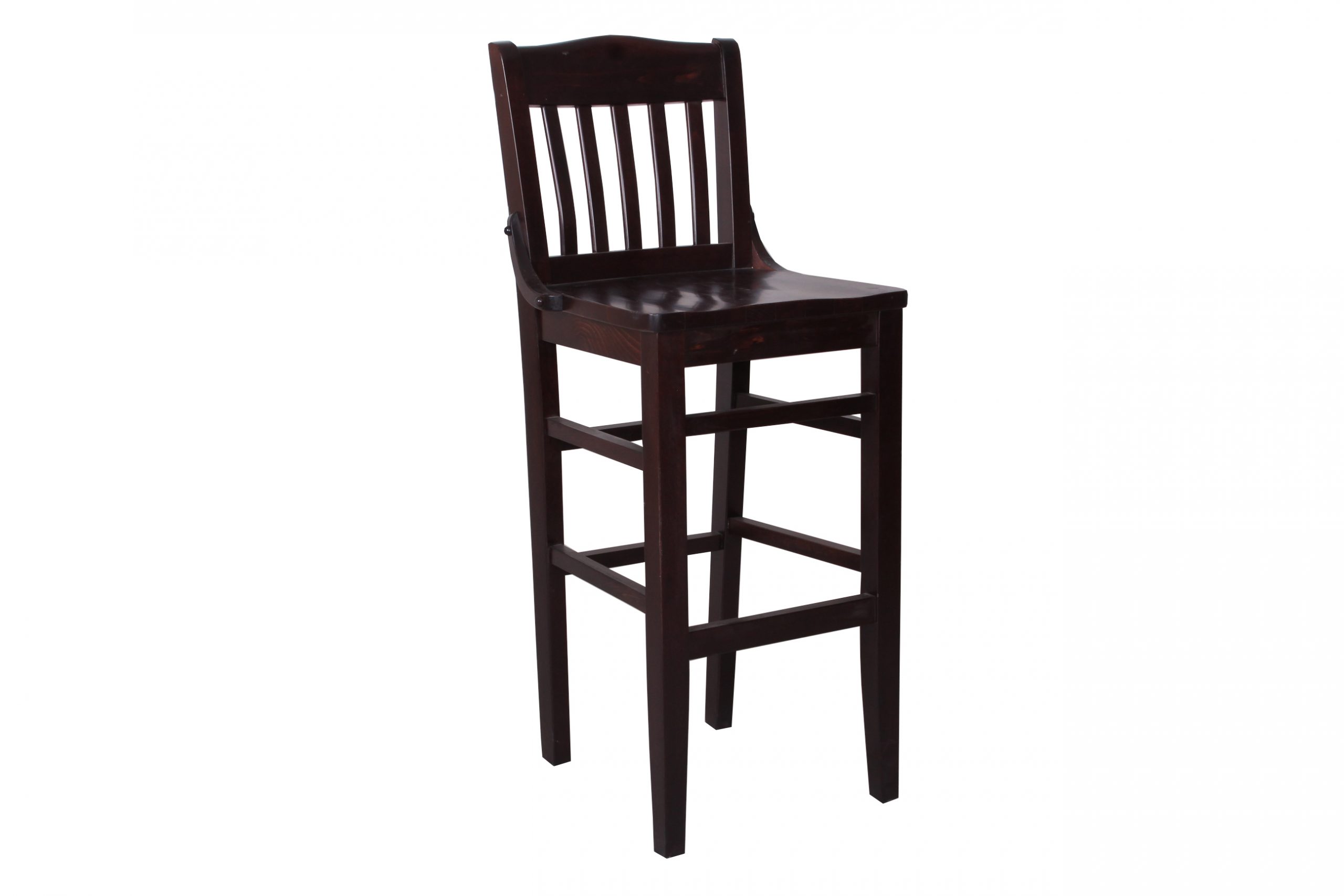 A solid, reliable slat back stool with solid wood seat and back rest. The ergonomic back rest is contoured and sits over five, gently curving vertical slats for maximum comfort. The chair has a “double H” stretcher to reinforce the leg frame. A traditional chair, ideal for rural pubs and bars.